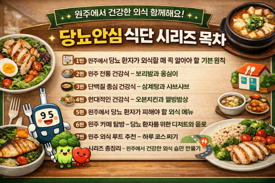 👉 다음 글에서는 1편: 원주에서 당뇨 환자가 외식할 때 꼭 알아야 할 기본 원칙을 본격적으로 다뤄보겠습니다.