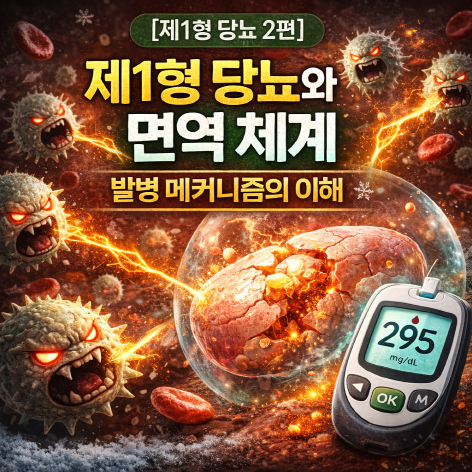[핵심 요약] 제1형 당뇨는 면역 체계의 오류로 발생하는 자가면역 질환으로, 유전적 소인과 환경적 요인이 함께 작용해 발병합니다. 이를 이해하는 것은 예방과 관리의 핵심입니다.